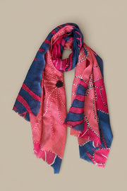 Sciarpa in lana integrale, meticolosamente ricamata a mano da maestri artigiani. La combinazione sofisticata di rosso e blu crea un'armonia visiva senza tempo, mentre la qualità della lana pura garantisce morbidezza e calore durevoli.